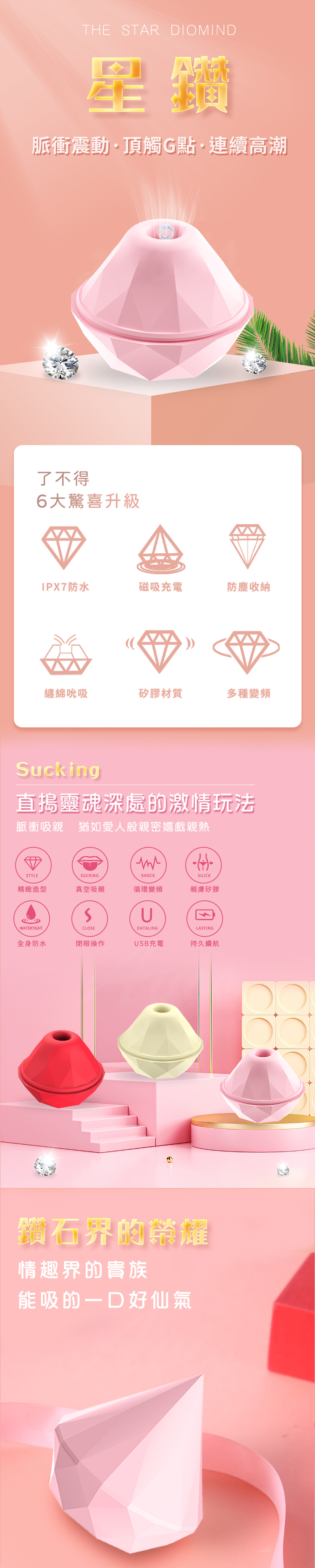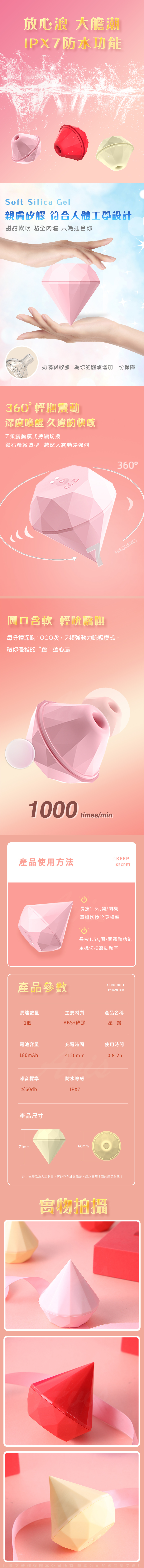 產品名稱:吻鑽|蜜豆吸吮+震動|鑽石造型按摩器