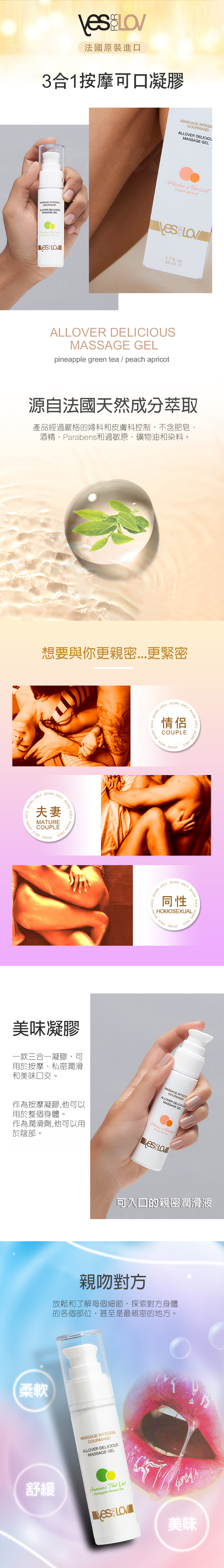產品名稱:YESforLOV|二合一潤滑液按摩凝膠|桃杏味 50ml