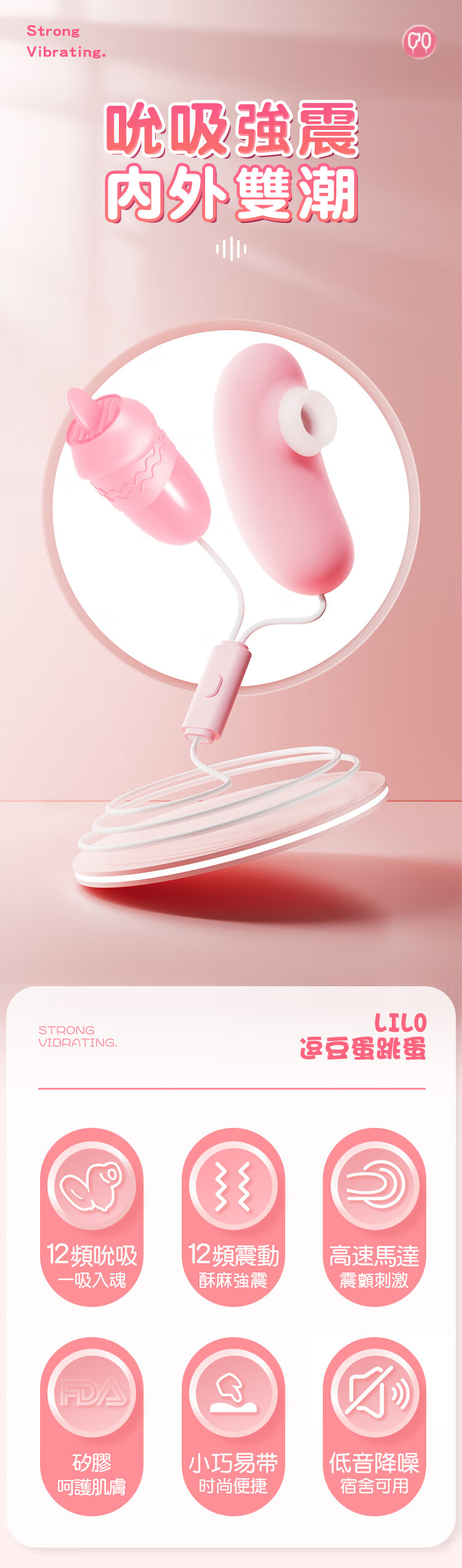 品名:LILO逗豆蛋|雙重功能震動吸吮跳蛋|USB即插即用
