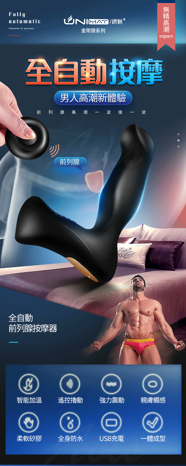 金鋼狼加溫型|自動擼動8頻震|無線遙控前列腺按摩棒