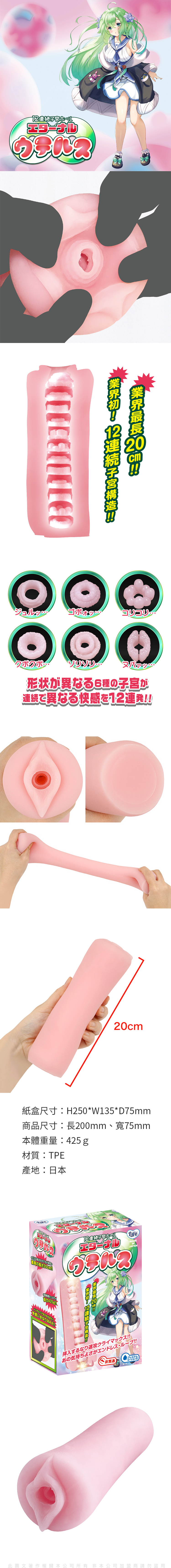這個長度,不管你多大,都會很滿足! 就算是正常尺寸的玩家,推進去也能充分感受到12個連續的子宮!