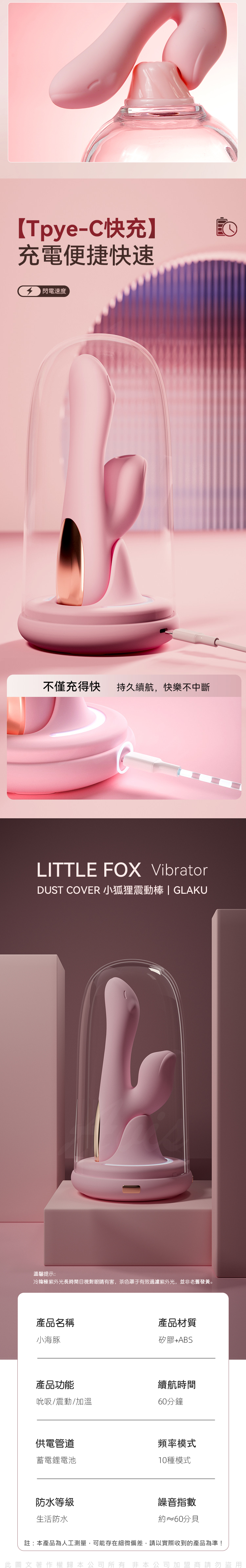 特色:防塵罩、藍光消毒、10頻強震、10頻吮吸、智能恆溫、生活防水