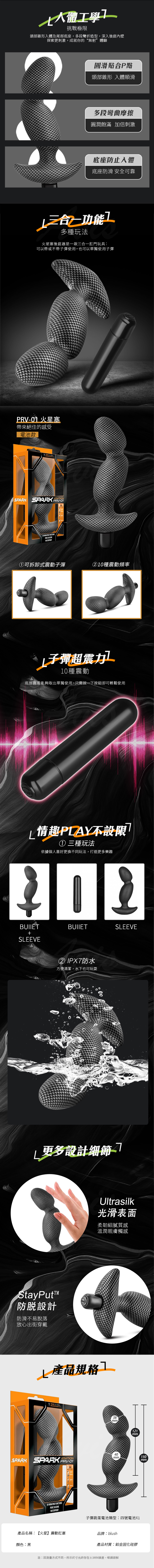 七人體工學:挑戰極限,讓您探索更深入的刺激體驗。頭部以錐形入體,尾部設有穩固的底座,並具有多段彎曲的造型,讓您深入後庭內壁,探索更刺激的感受,實現您的 '無射' 體驗。特別設計的頭部貼合 P 點,順滑進入體內,多段彎曲提供持久的摩擦,而圓潤飽滿的設計更加倍刺激。底座的設計旨在防止器具過深入體內,並具有防滑功能,確保使用的安全可靠。