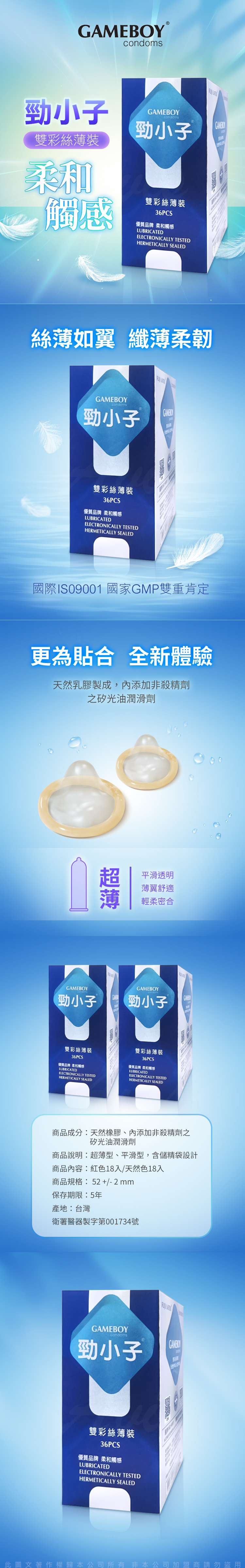 品名 :GAMEBOY勁小子 雙彩絲薄裝 保險套 衛生套 36入