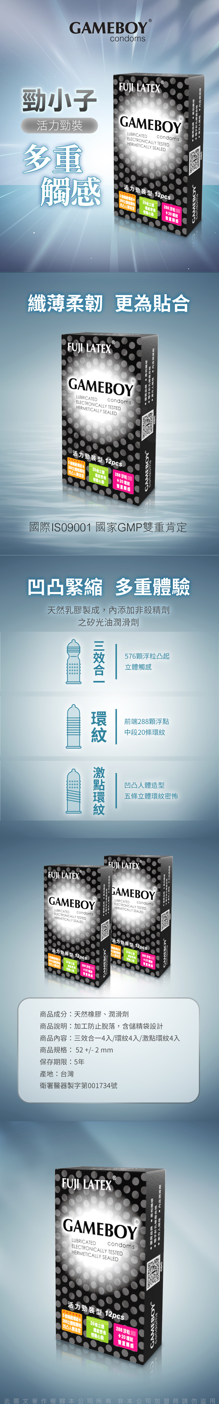 GAMEBOY勁小子|活力勁裝型|保險套 衛生套 12入