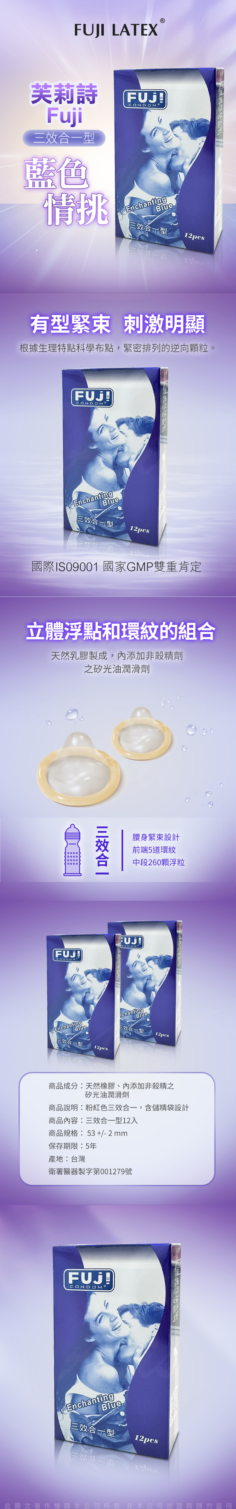 名稱:FujiCondom|芙莉詩 藍色情挑|衛生套 保險套 12入