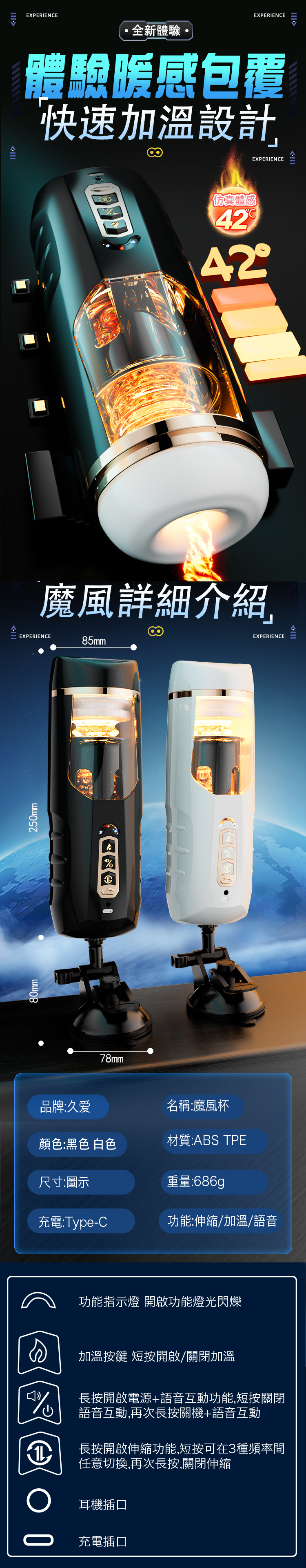 商品名稱:久愛|魔風杯|伸縮旋轉 智能活塞自慰杯