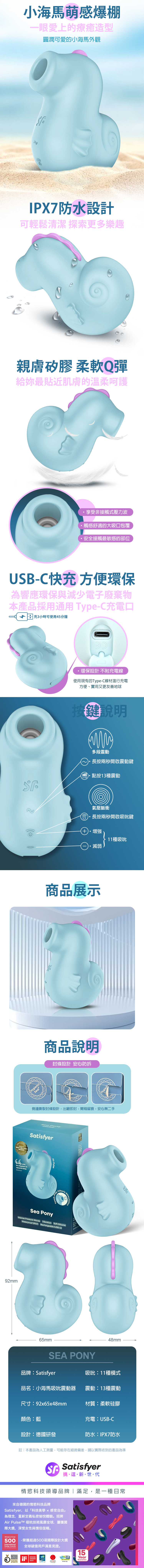 品名:Satisfyer|Sea Pony|小海馬 陰蒂吸吮震動器 藍