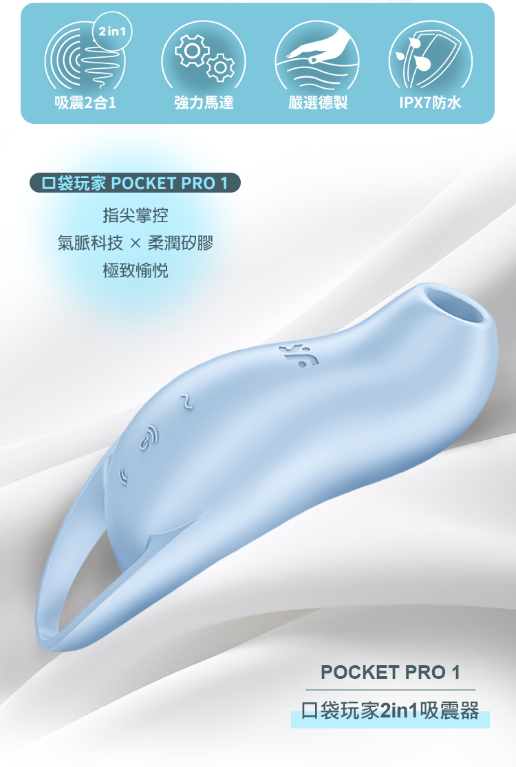 品名:Satisfyer|Pocket Pro 1|口袋玩家 陰蒂吸吮震動器 藍