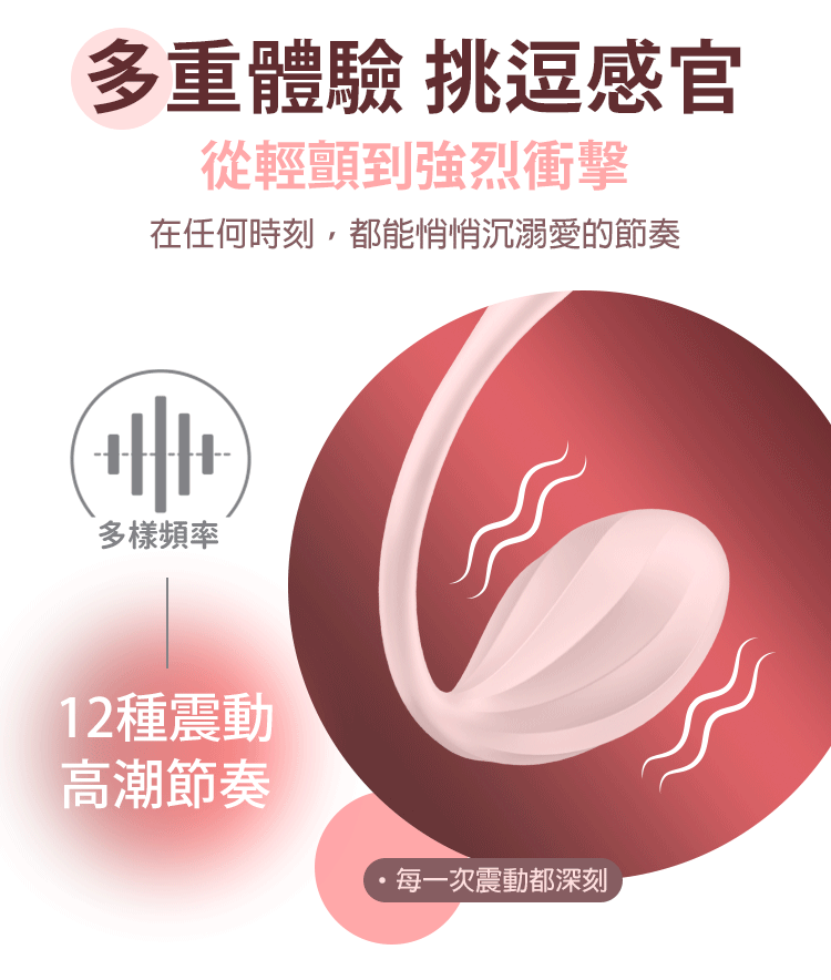 從輕柔撫觸到強烈震撼,12 種高潮節奏,滿足你每一刻的渴望。