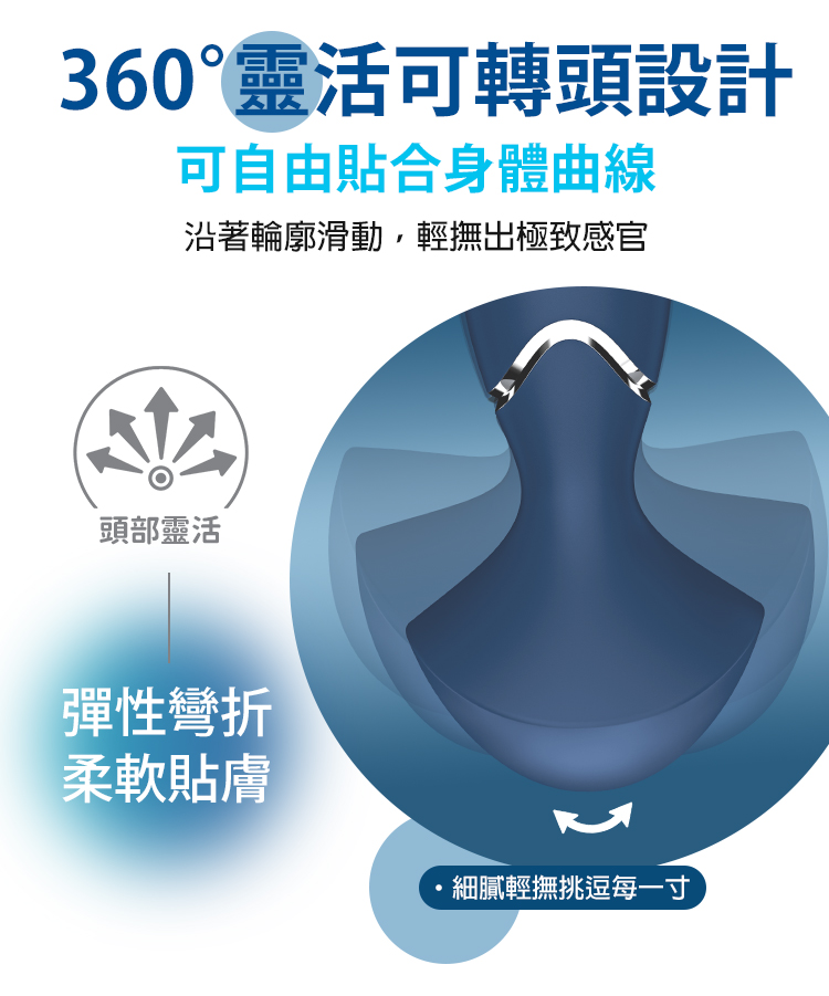 靈活可轉頭設計,柔軟貼膚,能溫柔地貼合身體曲線,帶來更細膩的觸感與震撼快感。