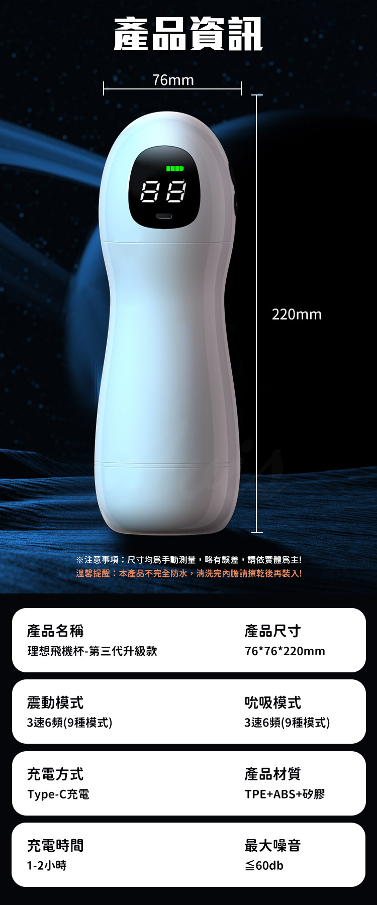 品名:理想杯3代|爆震吸吮|語音互動飛機杯